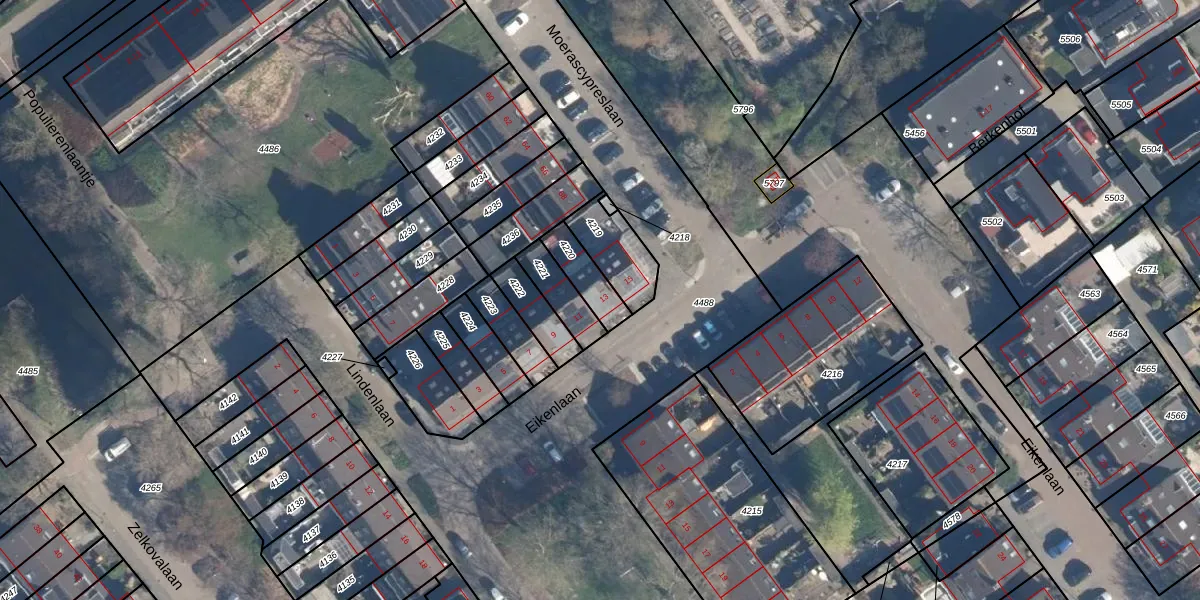Eikenlaan 13 is gelegen op kadastraal perceel ZTW01B4220. Deze kadastrale aanduiding is uniek en wordt gebruikt door het Kadaster om eigendomsrechten en andere zakelijke rechten vast te leggen. Het perceel maakt onderdeel uit van de kadastrale gemeente Zoeterwoude.
