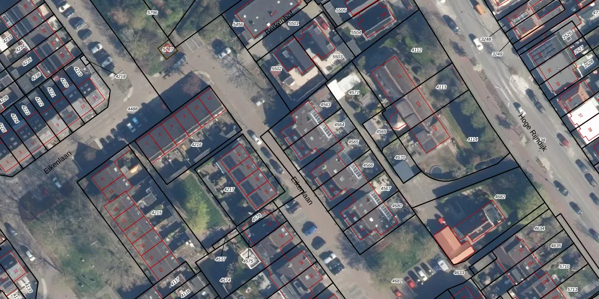 Eikenlaan 19 is gelegen op kadastraal perceel ZTW01B4564. Deze kadastrale aanduiding is uniek en wordt gebruikt door het Kadaster om eigendomsrechten en andere zakelijke rechten vast te leggen. Het perceel maakt onderdeel uit van de kadastrale gemeente Zoeterwoude.