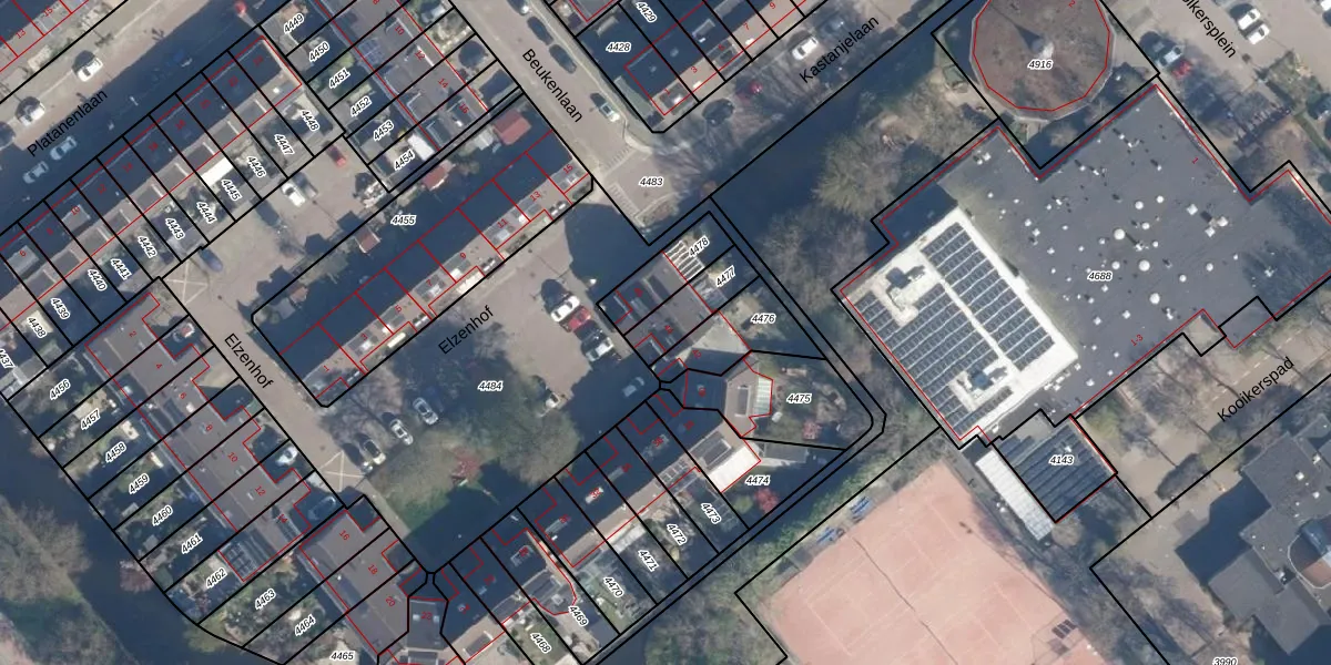 Elzenhof 44 is gelegen op kadastraal perceel ZTW01B4477. Deze kadastrale aanduiding is uniek en wordt gebruikt door het Kadaster om eigendomsrechten en andere zakelijke rechten vast te leggen. Het perceel maakt onderdeel uit van de kadastrale gemeente Zoeterwoude.