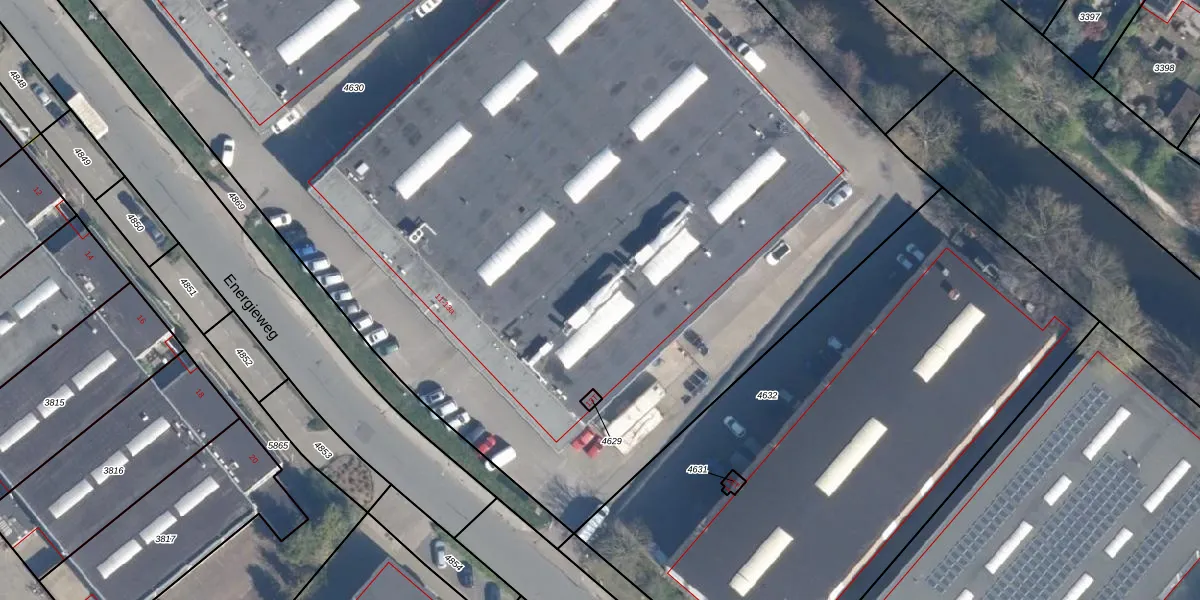 Het perceel waarop Energieweg 13-A staat heeft een oppervlakte van 1,3 ha. Dit is een zeer groot perceel. De perceeloppervlakte wordt geregistreerd door het Kadaster. Gedetailleerde informatie over de maten van dit perceel kunt u vinden in het rapport Kadastrale kaart met maatvoering van Energieweg 13-A.