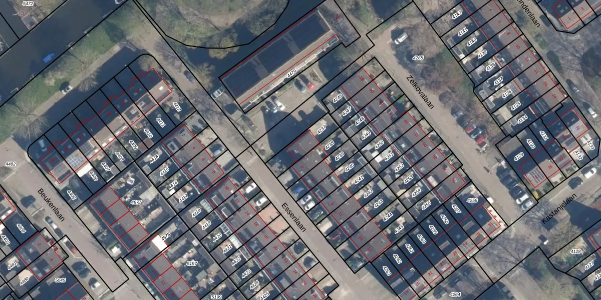 Het perceel waarop Essenlaan 1 staat heeft een oppervlakte van 165 m². Dit is een middelgroot perceel. De perceeloppervlakte wordt geregistreerd door het Kadaster. Gedetailleerde informatie over de maten van dit perceel kunt u vinden in het rapport Kadastrale kaart met maatvoering van Essenlaan 1.