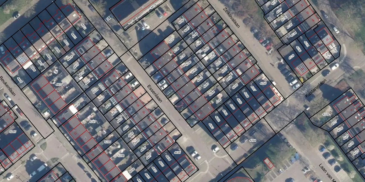 Gebruik de zoekbalk of klik op een perceel voor informatie over de adressen binnen dit perceel.