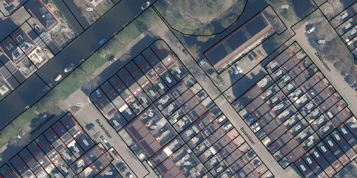 Essenlaan 2 is gelegen op kadastraal perceel ZTW01B4414. Deze kadastrale aanduiding is uniek en wordt gebruikt door het Kadaster om eigendomsrechten en andere zakelijke rechten vast te leggen. Het perceel maakt onderdeel uit van de kadastrale gemeente Zoeterwoude.