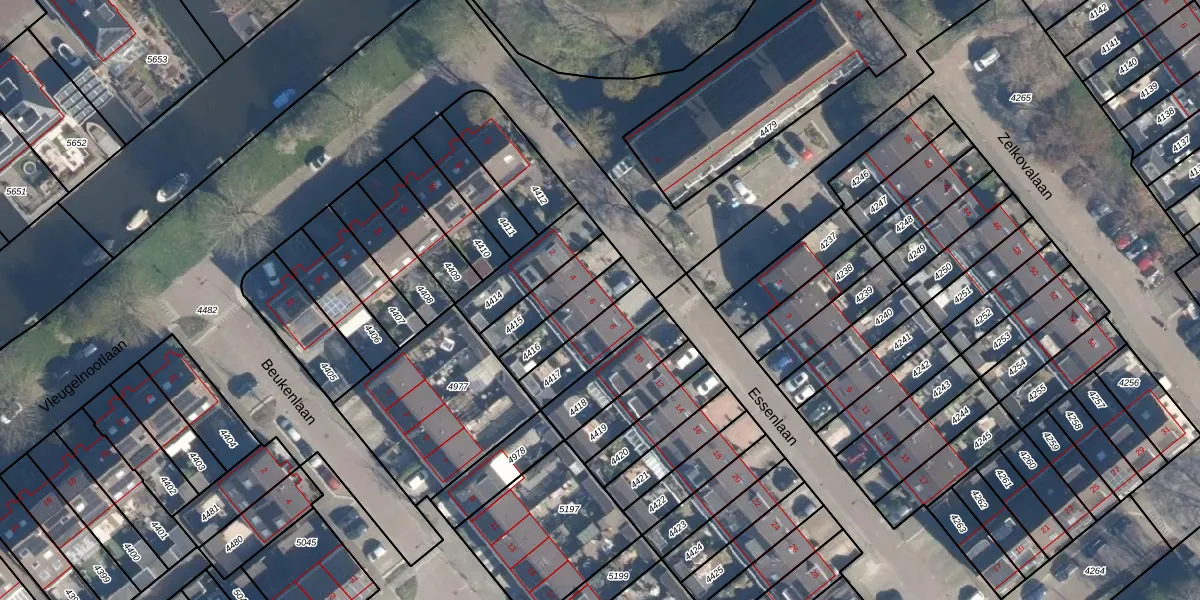 Essenlaan 6 is gelegen op kadastraal perceel ZTW01B4416. Deze kadastrale aanduiding is uniek en wordt gebruikt door het Kadaster om eigendomsrechten en andere zakelijke rechten vast te leggen. Het perceel maakt onderdeel uit van de kadastrale gemeente Zoeterwoude.