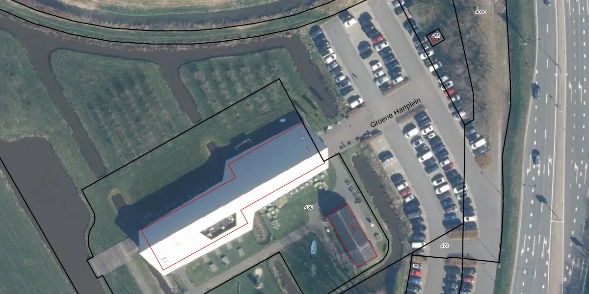 Groene Hartplein 1 is gelegen op kadastraal perceel ZTW01F450. Deze kadastrale aanduiding is uniek en wordt gebruikt door het Kadaster om eigendomsrechten en andere zakelijke rechten vast te leggen. Het perceel maakt onderdeel uit van de kadastrale gemeente Zoeterwoude.