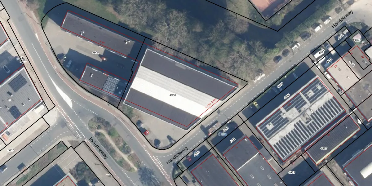 Handelsweg 1-U-45 is gelegen op kadastraal perceel ZTW01B4906. Deze kadastrale aanduiding is uniek en wordt gebruikt door het Kadaster om eigendomsrechten en andere zakelijke rechten vast te leggen. Het perceel maakt onderdeel uit van de kadastrale gemeente Zoeterwoude.