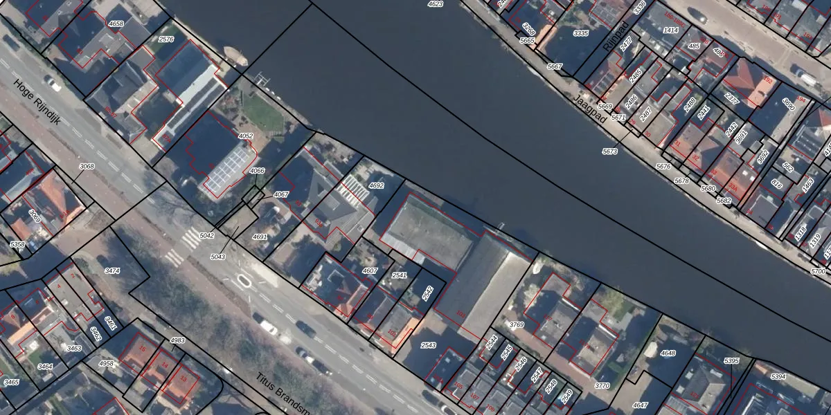 Hoge Rijndijk 103-B is gelegen op kadastraal perceel ZTW01B2543. Deze kadastrale aanduiding is uniek en wordt gebruikt door het Kadaster om eigendomsrechten en andere zakelijke rechten vast te leggen. Het perceel maakt onderdeel uit van de kadastrale gemeente Zoeterwoude.