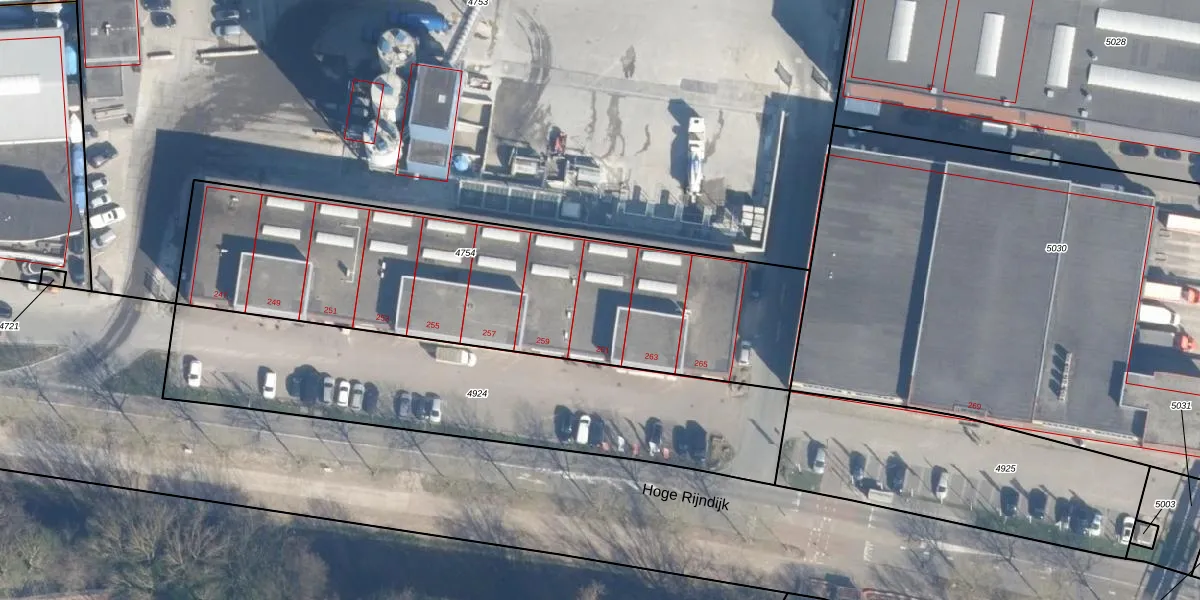 Hoge Rijndijk 261 is gelegen op kadastraal perceel ZTW01B4754. Deze kadastrale aanduiding is uniek en wordt gebruikt door het Kadaster om eigendomsrechten en andere zakelijke rechten vast te leggen. Het perceel maakt onderdeel uit van de kadastrale gemeente Zoeterwoude.