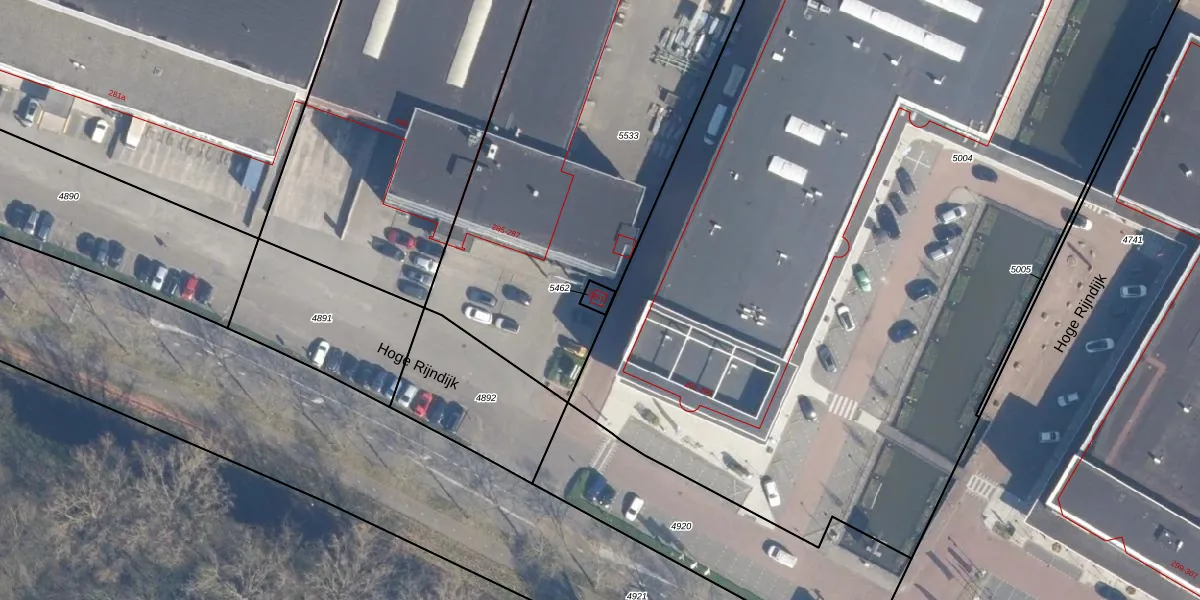 Hoge Rijndijk 285-T is gelegen op kadastraal perceel ZTW01B5462. Deze kadastrale aanduiding is uniek en wordt gebruikt door het Kadaster om eigendomsrechten en andere zakelijke rechten vast te leggen. Het perceel maakt onderdeel uit van de kadastrale gemeente Zoeterwoude.