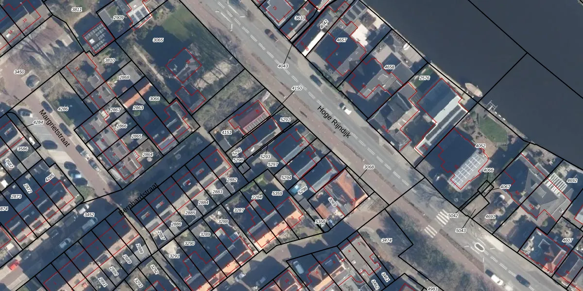 Hoge Rijndijk 44 is gelegen op kadastraal perceel ZTW01B5297. Deze kadastrale aanduiding is uniek en wordt gebruikt door het Kadaster om eigendomsrechten en andere zakelijke rechten vast te leggen. Het perceel maakt onderdeel uit van de kadastrale gemeente Zoeterwoude.