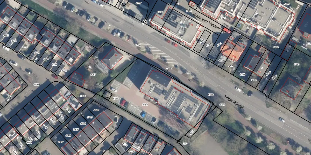 Het adres is gelegen op perceel 5784 in de sectie B en de kadastrale gemeente Zoeterwoude. De kadastrale aanduiding is aldus ZTW01-B-5784. De gemiddelde perceelgrootte in Zoeterwoude is 4247,2 m². Dit perceel is kleiner: de perceeloppervlakte bedraagt 1971 m². Het kleinste perceel in de kadastrale gemeente is 0 m² groot. De grootste perceeloppervlakte is 76,0 ha. Op het perceel zijn 34 adressen aanwezig. De huidige grenzen van het perceel zijn digitaal in de Basisregistratie Kadaster (BRK) geregistreerd op 01-09-2023.
