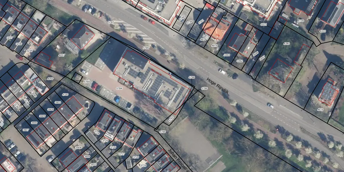 Het adres is gelegen op perceel 5784 in de sectie B en de kadastrale gemeente Zoeterwoude. De kadastrale aanduiding is aldus ZTW01-B-5784. De gemiddelde perceelgrootte in Zoeterwoude is 4247,2 m². Dit perceel is kleiner: de perceeloppervlakte bedraagt 1971 m². Het kleinste perceel in de kadastrale gemeente is 0 m² groot. De grootste perceeloppervlakte is 76,0 ha. Op het perceel liggen in totaal 34 adressen. In de Basisregistratie Kadaster (BRK) werden de grenzen van het perceel geregistreerd op 01-09-2023.