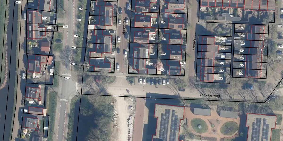 Gebruik de zoekbalk of klik op een perceel voor informatie over de adressen binnen dit perceel.