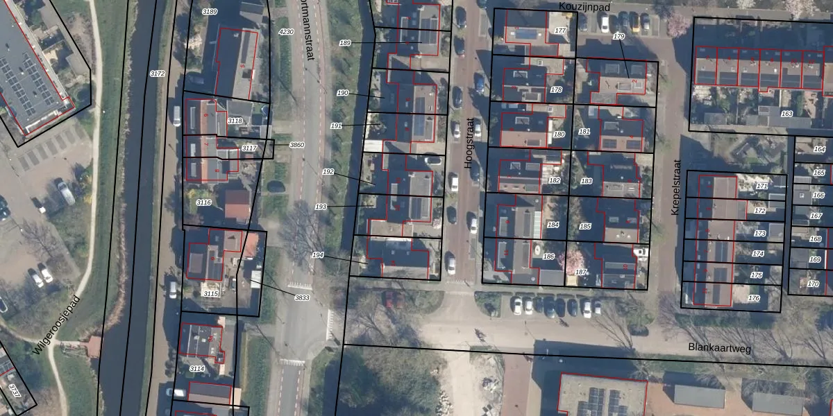 Gebruik de zoekbalk of klik op een perceel voor informatie over de adressen binnen dit perceel.