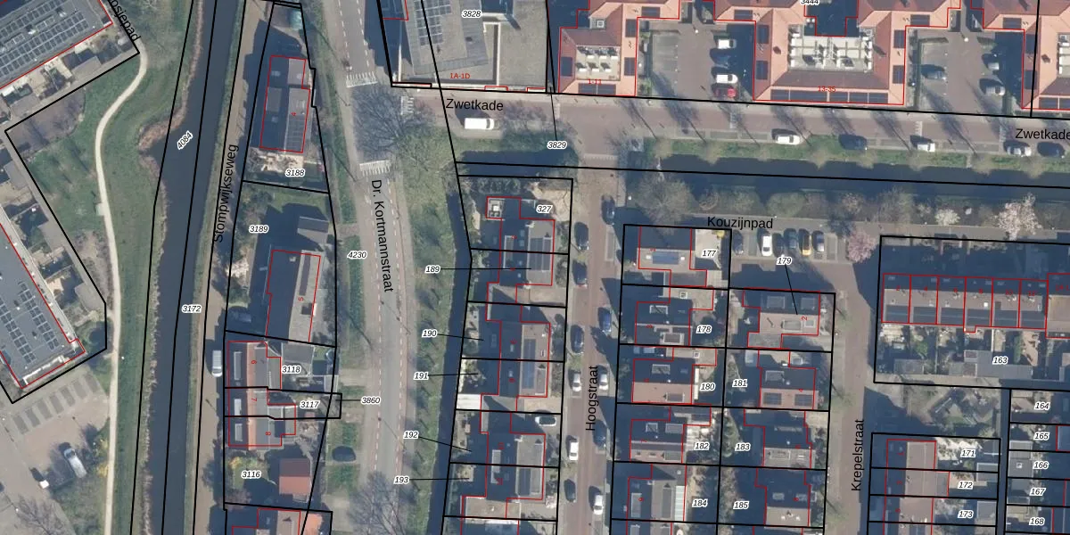 Het perceel waarop Hoogstraat 4 staat heeft een oppervlakte van 185 m². Dit is een middelgroot perceel. De perceeloppervlakte wordt geregistreerd door het Kadaster. Gedetailleerde informatie over de maten van dit perceel kunt u vinden in het rapport Kadastrale kaart met maatvoering van Hoogstraat 4.