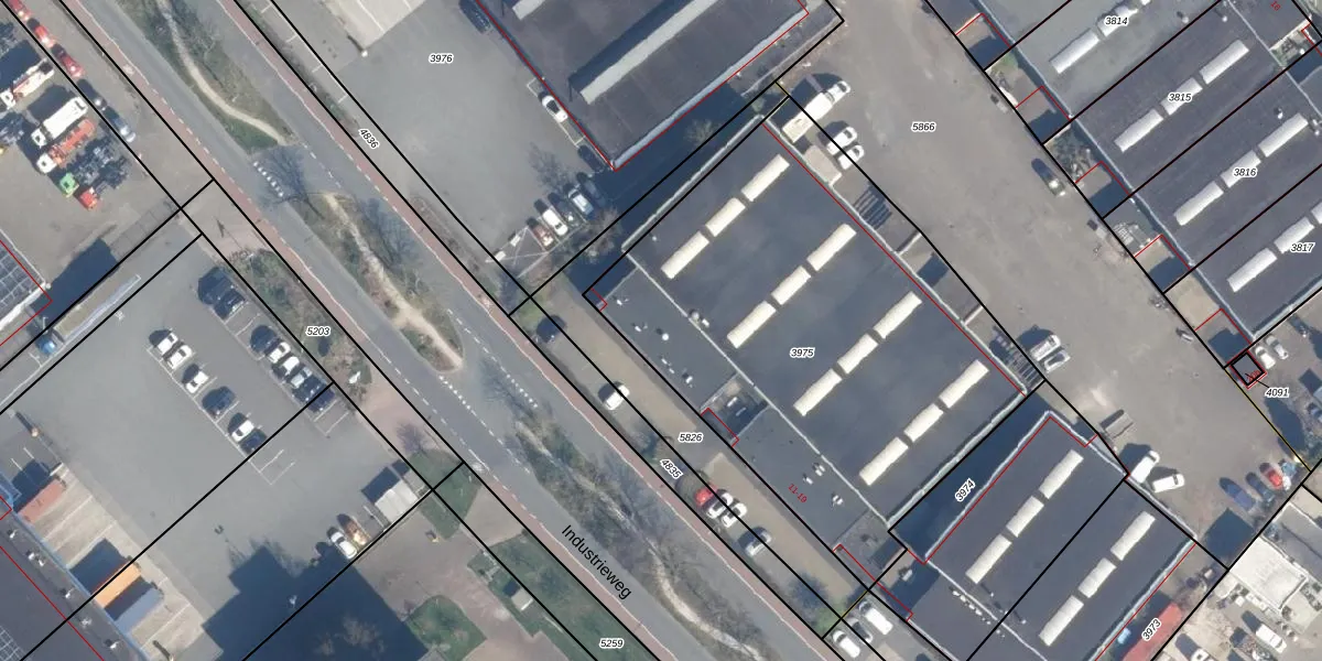 Het perceel waarop Industrieweg 13 staat heeft een oppervlakte van 2545 m². Dit is een zeer groot perceel. De perceeloppervlakte wordt geregistreerd door het Kadaster. Gedetailleerde informatie over de maten van dit perceel kunt u vinden in het rapport Kadastrale kaart met maatvoering van Industrieweg 13.