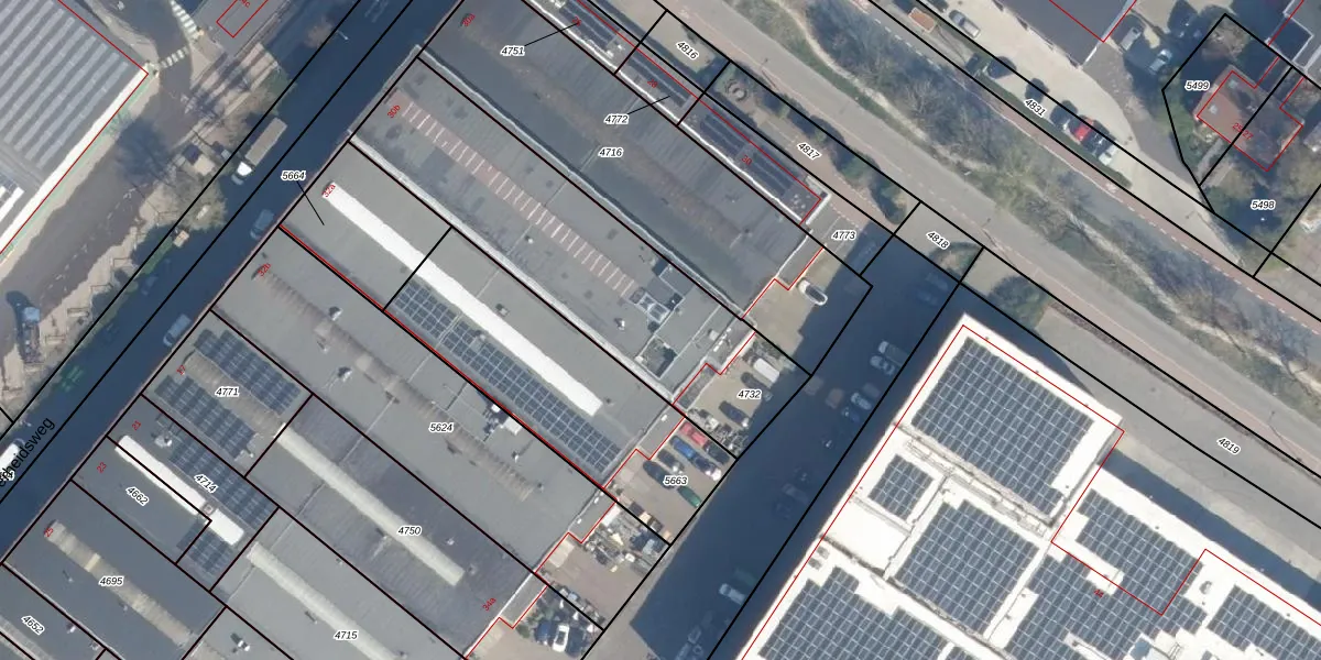 Het perceel waarop Industrieweg 30-B staat heeft een oppervlakte van 1266 m². Dit is een zeer groot perceel. De perceeloppervlakte wordt geregistreerd door het Kadaster. Gedetailleerde informatie over de maten van dit perceel kunt u vinden in het rapport Kadastrale kaart met maatvoering van Industrieweg 30-B.
