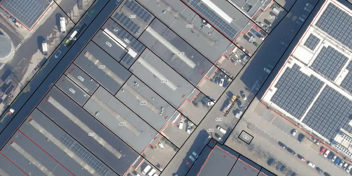 Industrieweg 34-B is gelegen op kadastraal perceel ZTW01B4715. Deze kadastrale aanduiding is uniek en wordt gebruikt door het Kadaster om eigendomsrechten en andere zakelijke rechten vast te leggen. Het perceel maakt onderdeel uit van de kadastrale gemeente Zoeterwoude.