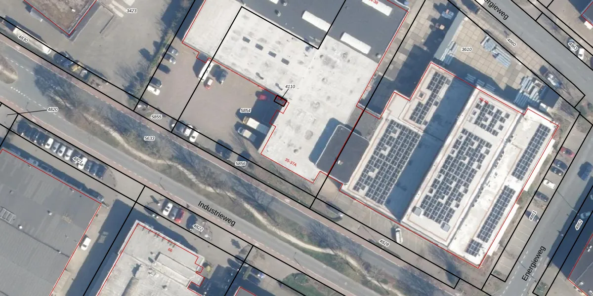 Het perceel waarop Industrieweg 37 staat heeft een oppervlakte van 3267 m². Dit is een zeer groot perceel. De perceeloppervlakte wordt geregistreerd door het Kadaster. Gedetailleerde informatie over de maten van dit perceel kunt u vinden in het rapport Kadastrale kaart met maatvoering van Industrieweg 37.