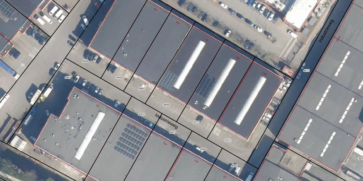 Industrieweg 48 is gelegen op kadastraal perceel ZTW01B4899. Deze kadastrale aanduiding is uniek en wordt gebruikt door het Kadaster om eigendomsrechten en andere zakelijke rechten vast te leggen. Het perceel maakt onderdeel uit van de kadastrale gemeente Zoeterwoude.