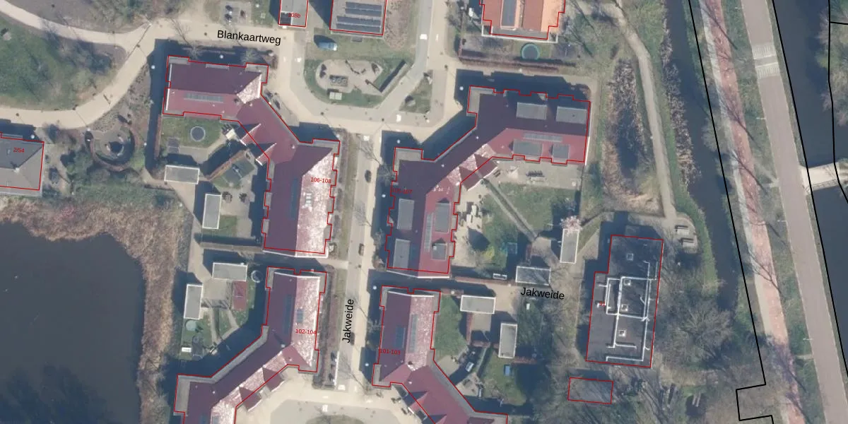 Het perceel waarop Jakweide 105 staat heeft een oppervlakte van 11,7 ha. Dit is een zeer groot perceel. De perceeloppervlakte wordt geregistreerd door het Kadaster. Gedetailleerde informatie over de maten van dit perceel kunt u vinden in het rapport Kadastrale kaart met maatvoering van Jakweide 105.