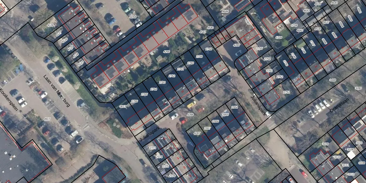 Julianapark 10 is gelegen op kadastraal perceel ZTW01B2762. Deze kadastrale aanduiding is uniek en wordt gebruikt door het Kadaster om eigendomsrechten en andere zakelijke rechten vast te leggen. Het perceel maakt onderdeel uit van de kadastrale gemeente Zoeterwoude.