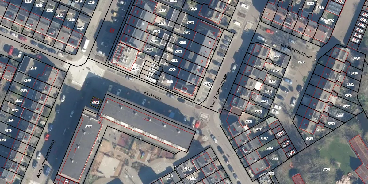 Kerklaan 18-A is gelegen op kadastraal perceel ZTW01E4121. Deze kadastrale aanduiding is uniek en wordt gebruikt door het Kadaster om eigendomsrechten en andere zakelijke rechten vast te leggen. Het perceel maakt onderdeel uit van de kadastrale gemeente Zoeterwoude.