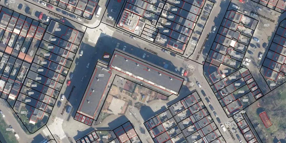 Kerklaan 19 is gelegen op kadastraal perceel ZTW01E2099. Deze kadastrale aanduiding is uniek en wordt gebruikt door het Kadaster om eigendomsrechten en andere zakelijke rechten vast te leggen. Het perceel maakt onderdeel uit van de kadastrale gemeente Zoeterwoude.