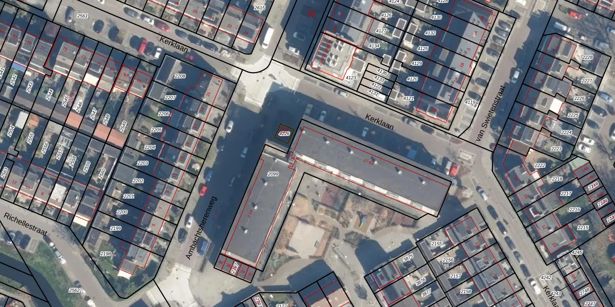 Kerklaan 59 is gelegen op kadastraal perceel ZTW01E2099. Deze kadastrale aanduiding is uniek en wordt gebruikt door het Kadaster om eigendomsrechten en andere zakelijke rechten vast te leggen. Het perceel maakt onderdeel uit van de kadastrale gemeente Zoeterwoude.