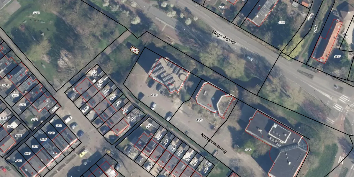 Het perceel waarop het adres ligt is ZTW01-B-4388. De afkorting 'ZTW01' staat voor kadastrale gemeente Zoeterwoude. Het perceel is 1005 m² groot. Dat is kleiner dan de gemiddelde perceeloppervlakte in Zoeterwoude, dat op 4240,64 m² ligt. Het kleinste perceel in de kadastrale gemeente is 0 m² groot. De grootste perceeloppervlakte is 76,0 ha. Op het perceel zijn 14 adressen aanwezig. In de Basisregistratie Kadaster (BRK) werden de grenzen van het perceel geregistreerd op 18-05-2009.
