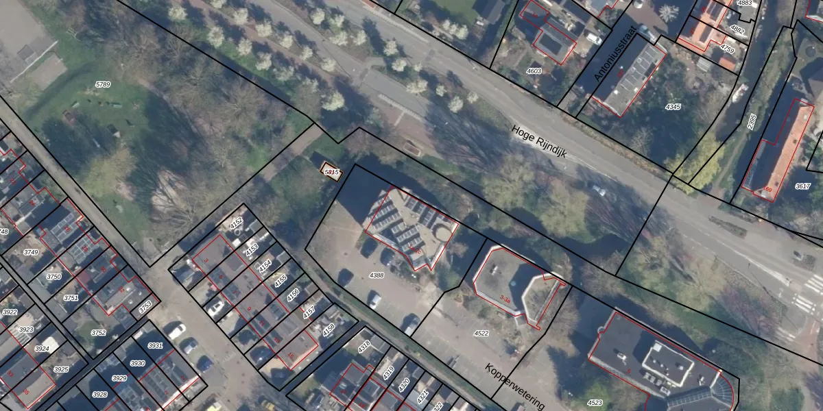 Het perceel waarop het adres ligt is ZTW01-B-4388. De afkorting 'ZTW01' staat voor kadastrale gemeente Zoeterwoude. Het perceel is 1005 m² groot. Dat is kleiner dan de gemiddelde perceeloppervlakte in Zoeterwoude, dat op 4240,64 m² ligt. De grootste perceeloppervlakte in de kadastrale gemeente is 76,0 ha. De kleinste oppervlakte bedraagt 0 m². Op het perceel liggen in totaal 14 adressen. De huidige grenzen van het perceel zijn digitaal in de Basisregistratie Kadaster (BRK) geregistreerd op 18-05-2009.