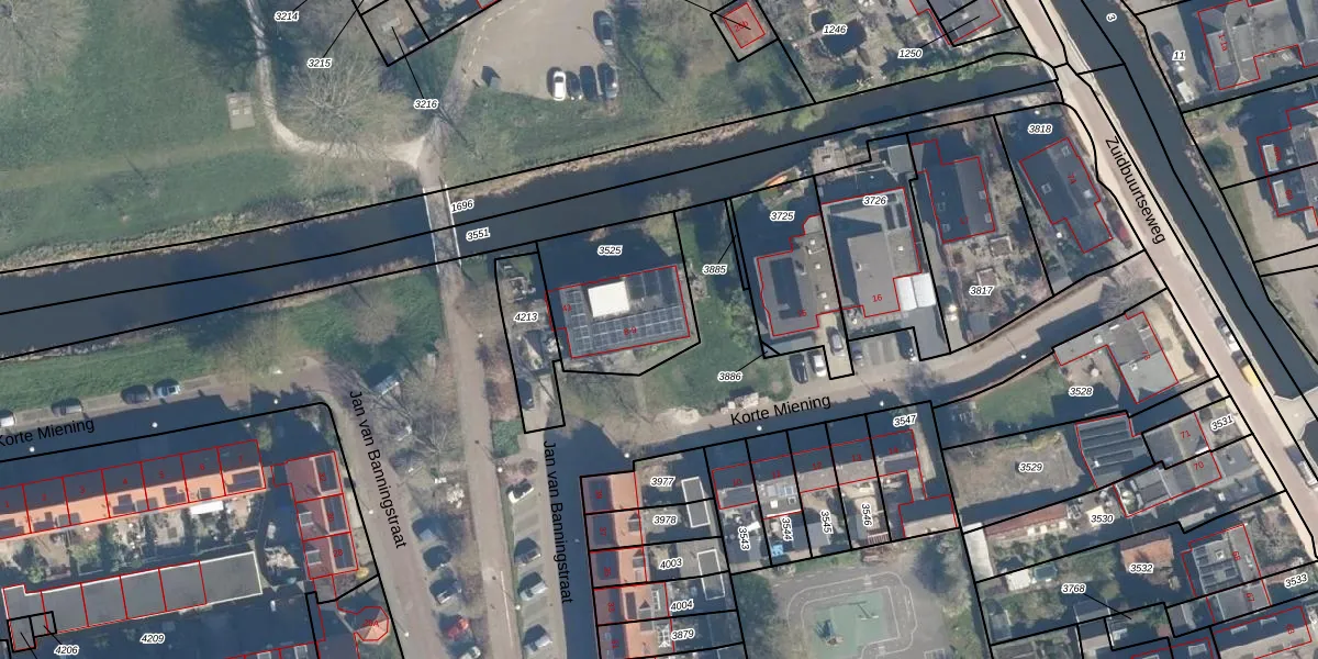 Korte Miening 9 is gelegen op kadastraal perceel ZTW01E3525. Deze kadastrale aanduiding is uniek en wordt gebruikt door het Kadaster om eigendomsrechten en andere zakelijke rechten vast te leggen. Het perceel maakt onderdeel uit van de kadastrale gemeente Zoeterwoude.
