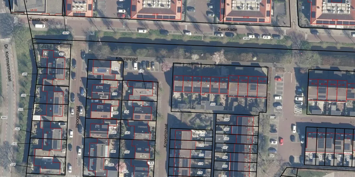 Het perceel waarop het adres ligt is ZTW01-F-163. De afkorting 'ZTW01' staat voor kadastrale gemeente Zoeterwoude. De gemiddelde perceelgrootte in Zoeterwoude is 4245,56 m². Dit perceel is kleiner: de perceeloppervlakte bedraagt 1400 m². Het grootste perceel in de kadastrale gemeente is 76,0 ha. Het kleinste perceel heeft een oppervlakte van 0 m². Op het perceel zijn 14 adressen aanwezig. De laatste wijziging in het de Basisregistratie Kadaster (BRK) was op 20-01-2003.