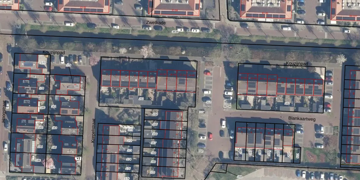 Het perceel waarop het adres ligt is ZTW01-F-163. De afkorting 'ZTW01' staat voor kadastrale gemeente Zoeterwoude. De gemiddelde perceelgrootte in Zoeterwoude is 4245,56 m². Dit perceel is kleiner: de perceeloppervlakte bedraagt 1400 m². Het grootste perceel in de kadastrale gemeente is 76,0 ha. Het kleinste perceel heeft een oppervlakte van 0 m². Er zijn 14 adressen aanwezig op het perceel. De laatste wijziging in het de Basisregistratie Kadaster (BRK) was op 20-01-2003.