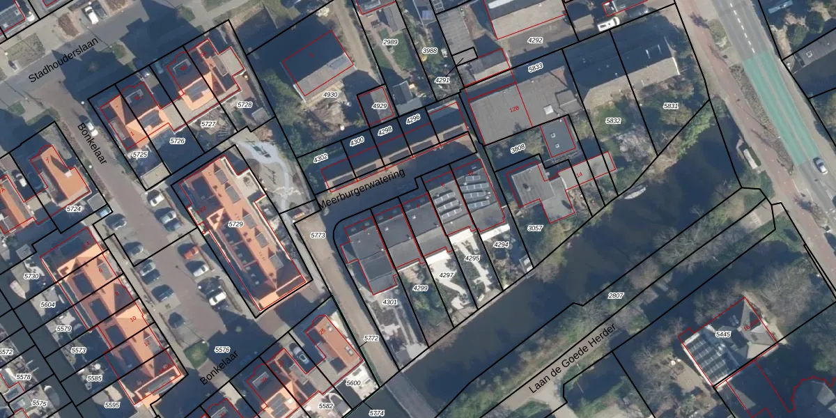 Meerburgerwatering 6 is gelegen op kadastraal perceel ZTW01B4297. Deze kadastrale aanduiding is uniek en wordt gebruikt door het Kadaster om eigendomsrechten en andere zakelijke rechten vast te leggen. Het perceel maakt onderdeel uit van de kadastrale gemeente Zoeterwoude.