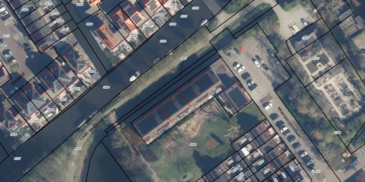 Het perceel waarop het adres ligt is ZTW01-B-4391. De afkorting 'ZTW01' staat voor kadastrale gemeente Zoeterwoude. De gemiddelde perceelgrootte in Zoeterwoude is 4247,2 m². Dit perceel is kleiner: de perceeloppervlakte bedraagt 1178 m². Het kleinste perceel in de kadastrale gemeente is 0 m² groot. De grootste perceeloppervlakte is 76,0 ha. Op het perceel liggen in totaal 29 adressen. De huidige grenzen van het perceel zijn digitaal in de Basisregistratie Kadaster (BRK) geregistreerd op 17-10-2005.