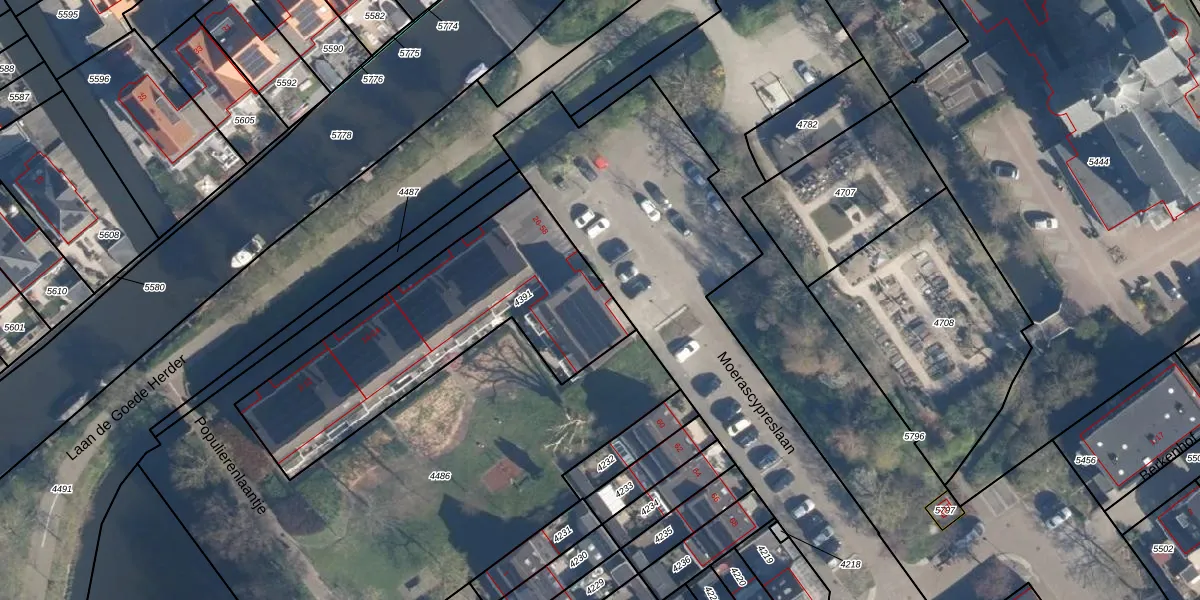 Moerascypreslaan 56 is gelegen op kadastraal perceel ZTW01B4391. Deze kadastrale aanduiding is uniek en wordt gebruikt door het Kadaster om eigendomsrechten en andere zakelijke rechten vast te leggen. Het perceel maakt onderdeel uit van de kadastrale gemeente Zoeterwoude.
