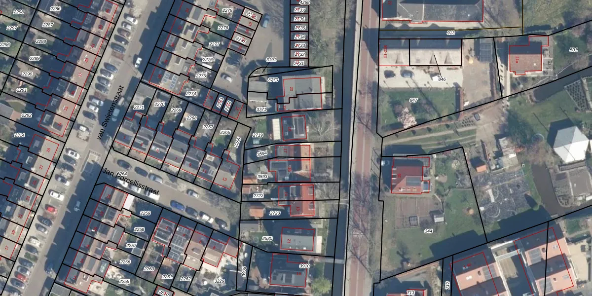 Gebruik de zoekbalk of klik op een perceel voor informatie over de adressen binnen dit perceel.
