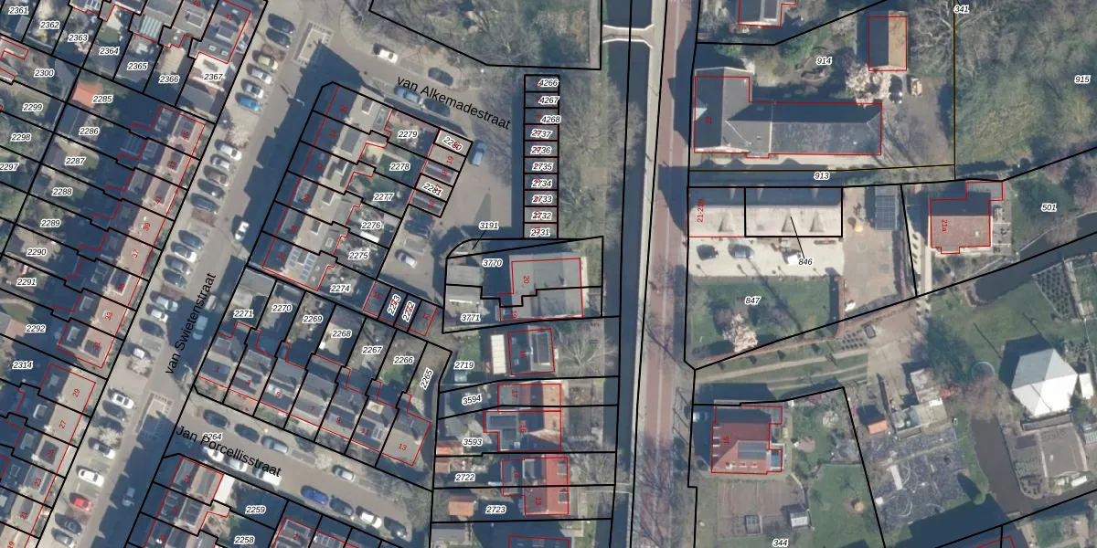 Gebruik de zoekbalk of klik op een perceel voor informatie over de adressen binnen dit perceel.