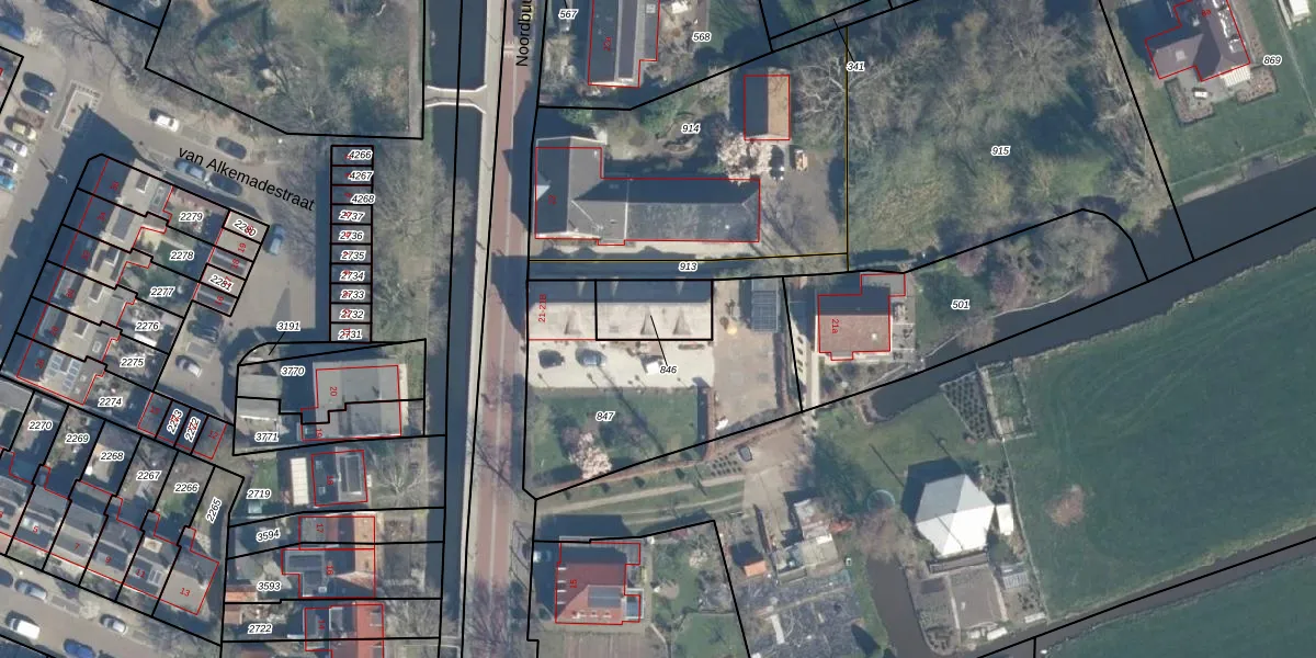 Gebruik de zoekbalk of klik op een perceel voor informatie over de adressen binnen dit perceel.