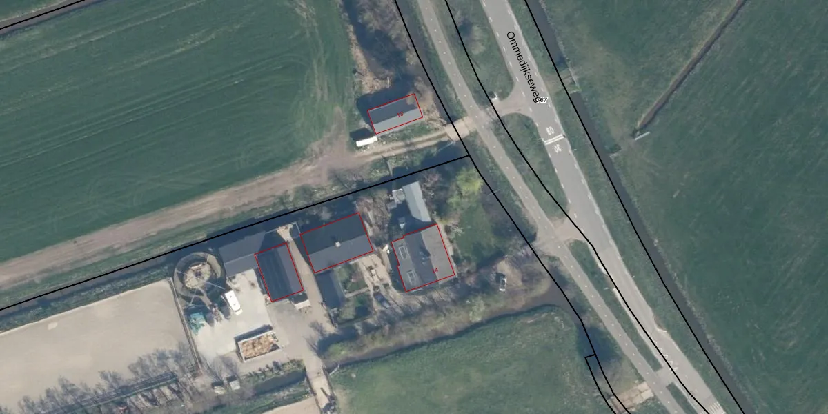 Het perceel waarop Ommedijkseweg 14-A staat heeft een oppervlakte van 1,1 ha. Dit is een zeer groot perceel. De perceeloppervlakte wordt geregistreerd door het Kadaster. Gedetailleerde informatie over de maten van dit perceel kunt u vinden in het rapport Kadastrale kaart met maatvoering van Ommedijkseweg 14-A.