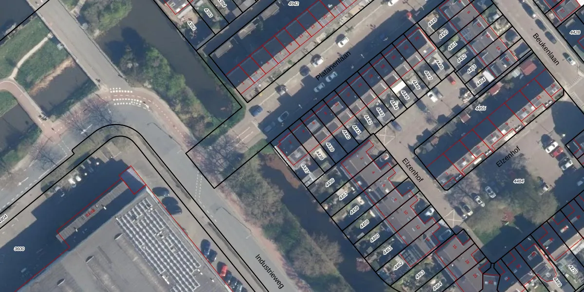 Gebruik de zoekbalk of klik op een perceel voor informatie over de adressen binnen dit perceel.