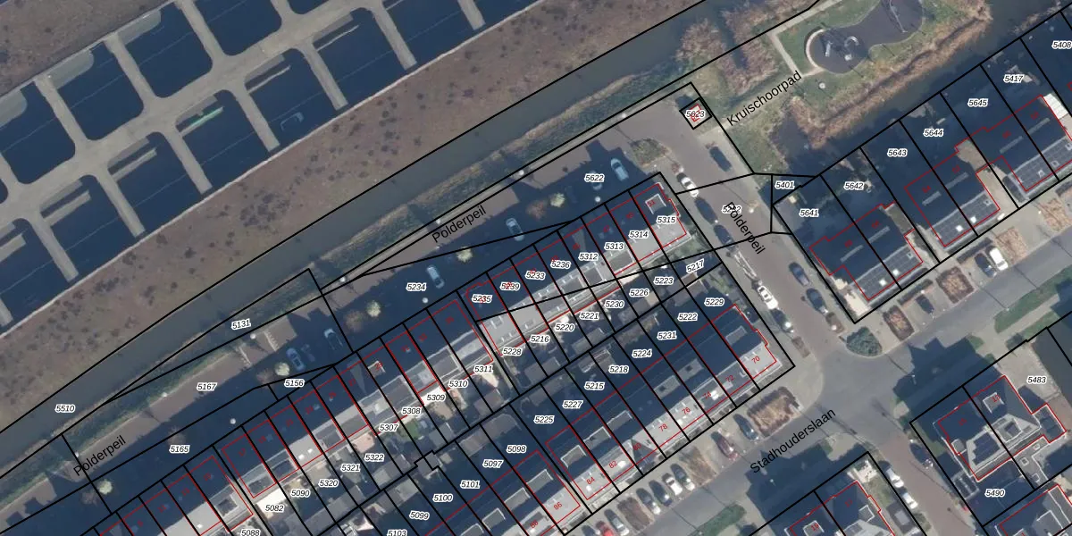 Het perceel waarop Polderpeil 41 staat heeft een oppervlakte van 53 m². Dit is een klein perceel. De perceeloppervlakte wordt geregistreerd door het Kadaster. Gedetailleerde informatie over de maten van dit perceel kunt u vinden in het rapport Kadastrale kaart met maatvoering van Polderpeil 41.