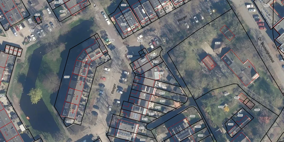 Het perceel waarop Reiger 3 staat heeft een oppervlakte van 105 m². Dit is een middelgroot perceel. De perceeloppervlakte wordt geregistreerd door het Kadaster. Gedetailleerde informatie over de maten van dit perceel kunt u vinden in het rapport Kadastrale kaart met maatvoering van Reiger 3.