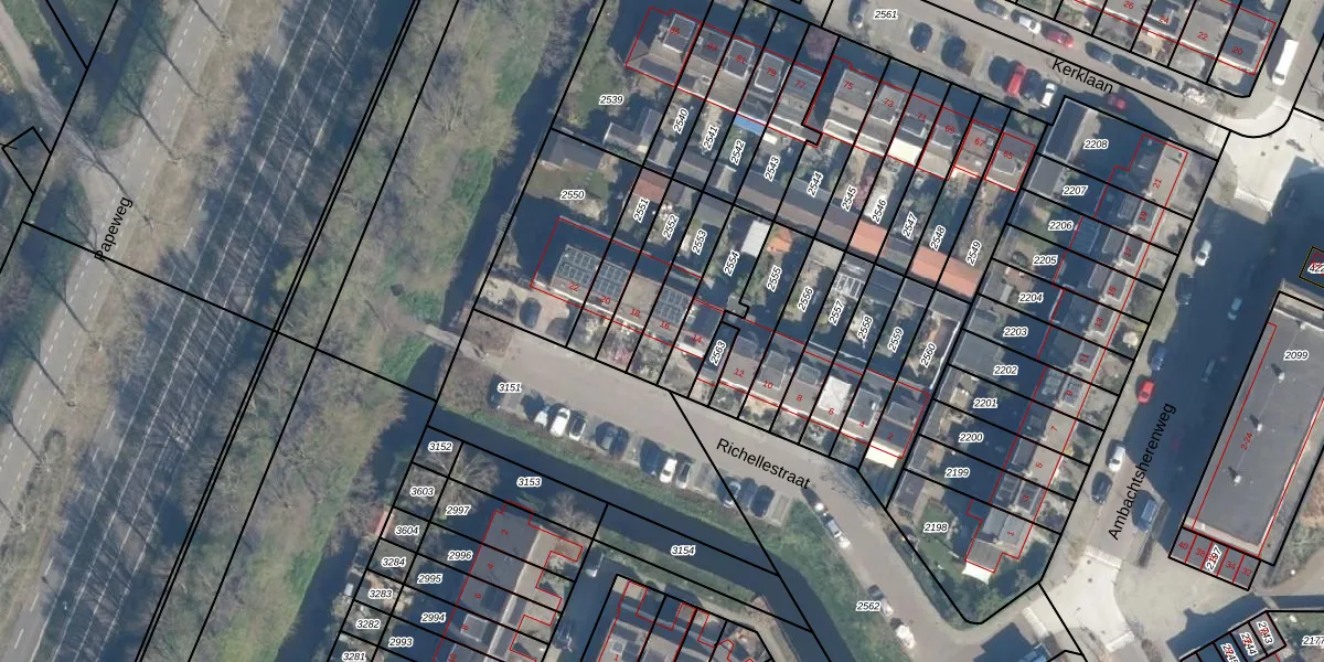 Richellestraat 16 is gelegen op kadastraal perceel ZTW01E2553. Deze kadastrale aanduiding is uniek en wordt gebruikt door het Kadaster om eigendomsrechten en andere zakelijke rechten vast te leggen. Het perceel maakt onderdeel uit van de kadastrale gemeente Zoeterwoude.