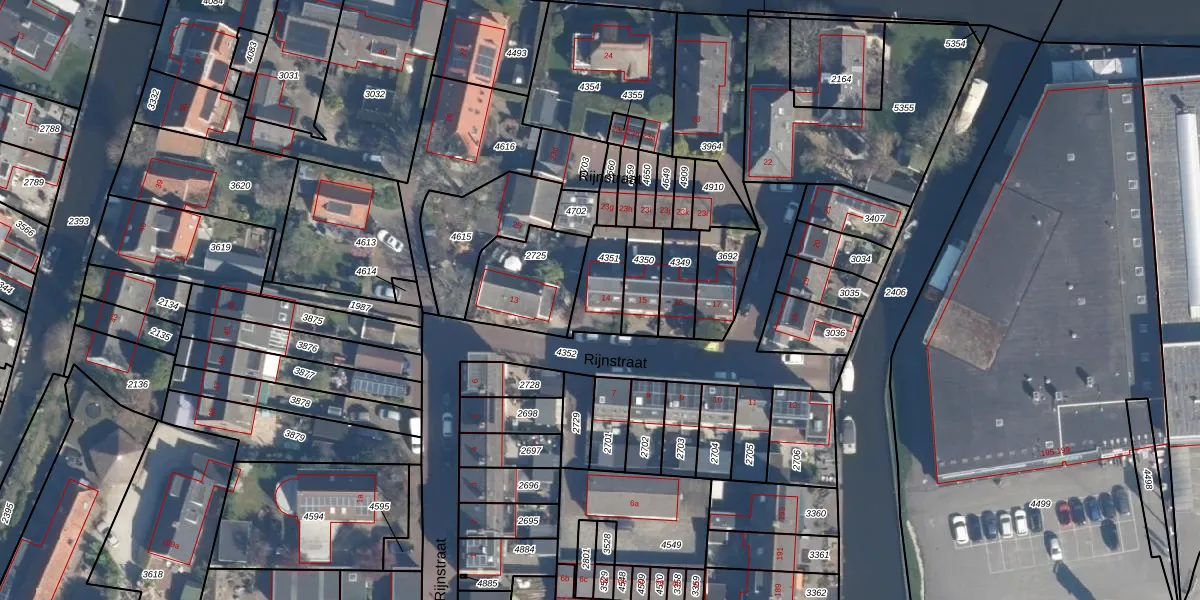 Rijnstraat 14 is gelegen op kadastraal perceel ZTW01B4351. Deze kadastrale aanduiding is uniek en wordt gebruikt door het Kadaster om eigendomsrechten en andere zakelijke rechten vast te leggen. Het perceel maakt onderdeel uit van de kadastrale gemeente Zoeterwoude.