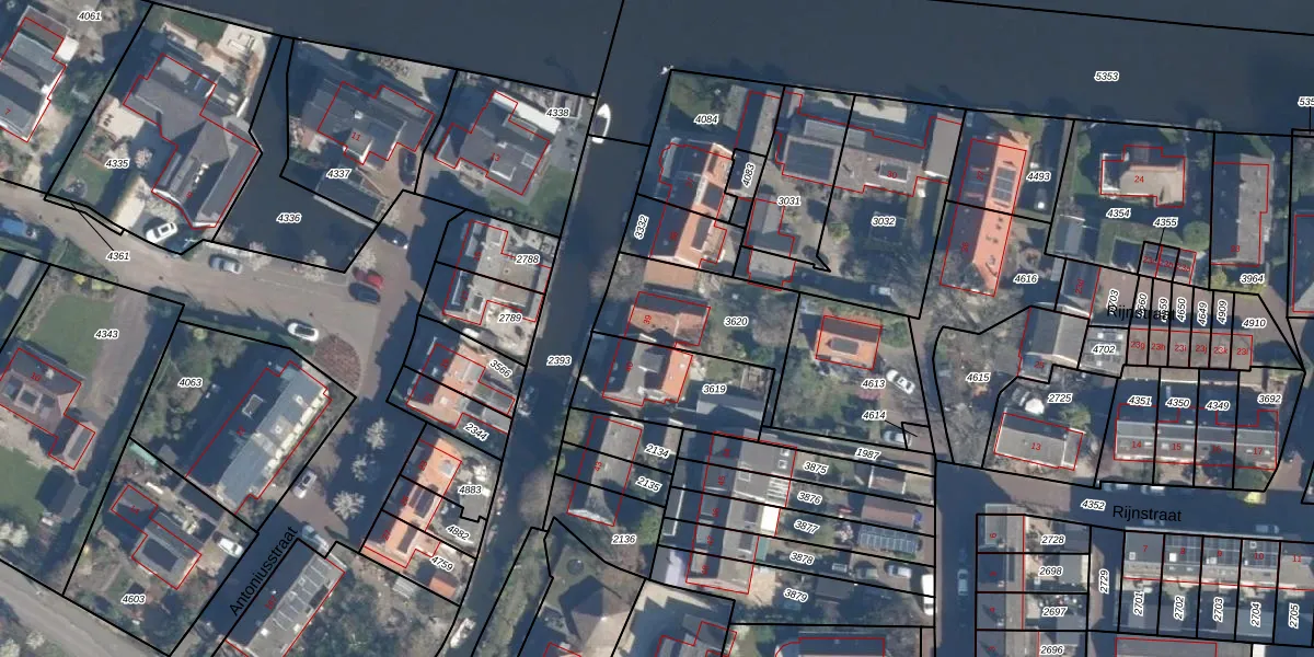 Het perceel waarop Rijnstraat 39 staat heeft een oppervlakte van 385 m². Dit is een groot perceel. De perceeloppervlakte wordt geregistreerd door het Kadaster. Gedetailleerde informatie over de maten van dit perceel kunt u vinden in het rapport Kadastrale kaart met maatvoering van Rijnstraat 39.