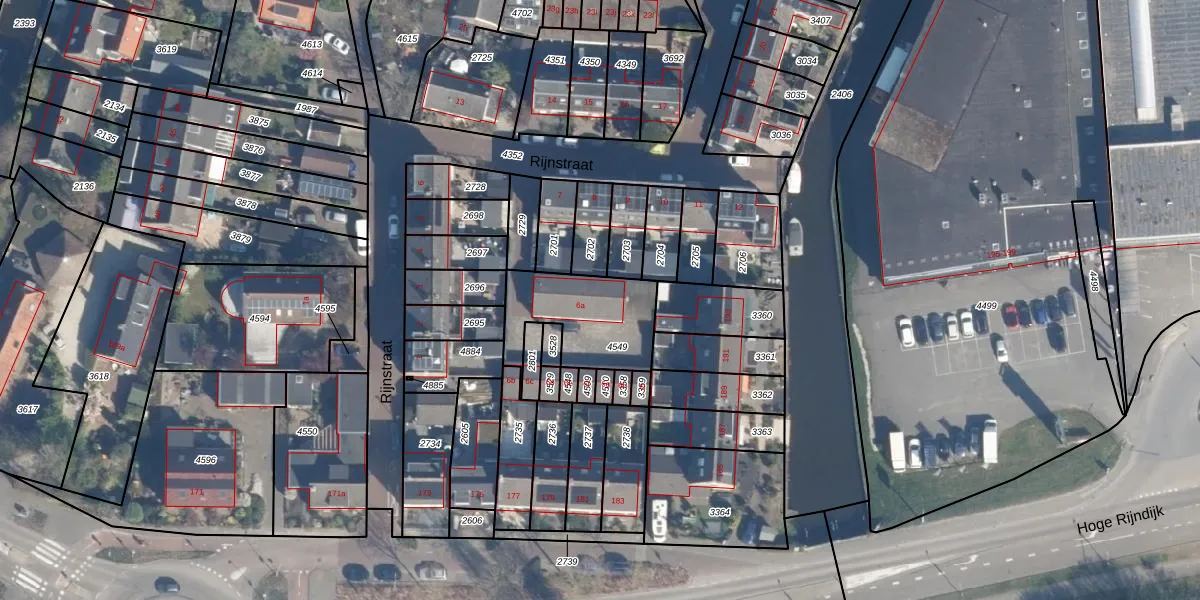 Rijnstraat 6-A is gelegen op kadastraal perceel ZTW01B4549. Deze kadastrale aanduiding is uniek en wordt gebruikt door het Kadaster om eigendomsrechten en andere zakelijke rechten vast te leggen. Het perceel maakt onderdeel uit van de kadastrale gemeente Zoeterwoude.
