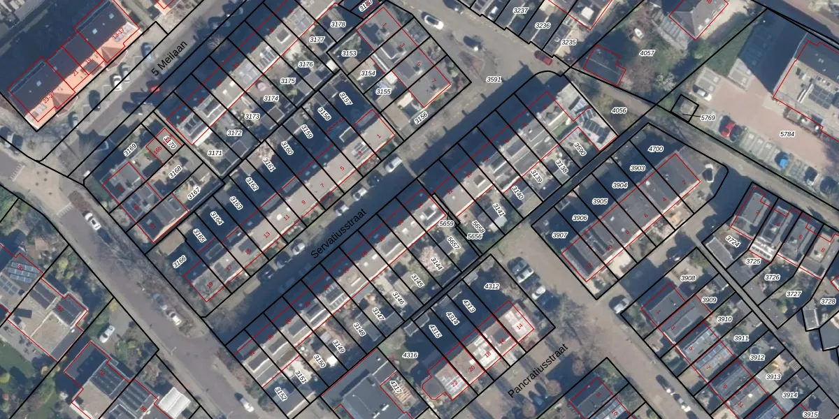 Het perceel waarop Servatiusstraat 14 staat heeft een oppervlakte van 158 m². Dit is een middelgroot perceel. De perceeloppervlakte wordt geregistreerd door het Kadaster. Gedetailleerde informatie over de maten van dit perceel kunt u vinden in het rapport Kadastrale kaart met maatvoering van Servatiusstraat 14.