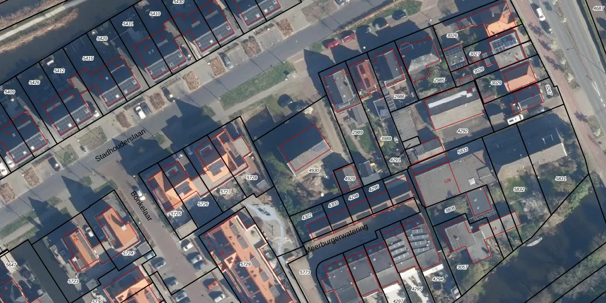 Stadhouderslaan 5 is gelegen op kadastraal perceel ZTW01B4930. Deze kadastrale aanduiding is uniek en wordt gebruikt door het Kadaster om eigendomsrechten en andere zakelijke rechten vast te leggen. Het perceel maakt onderdeel uit van de kadastrale gemeente Zoeterwoude.